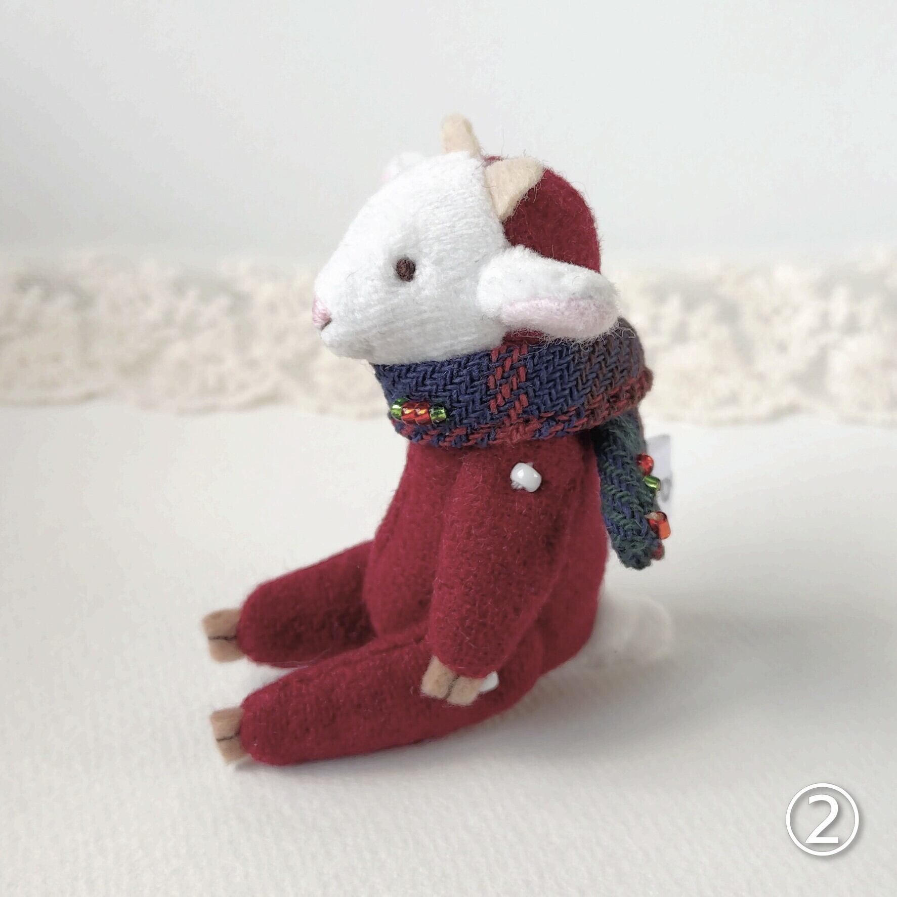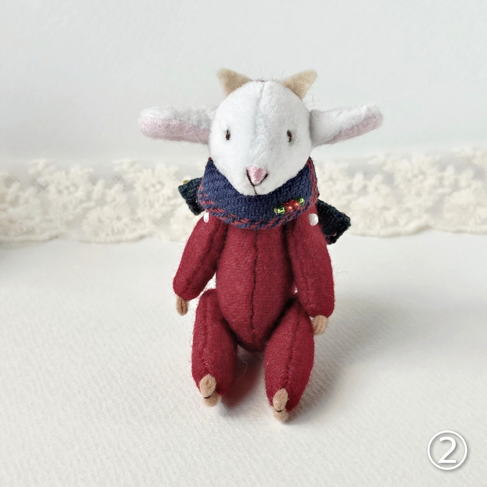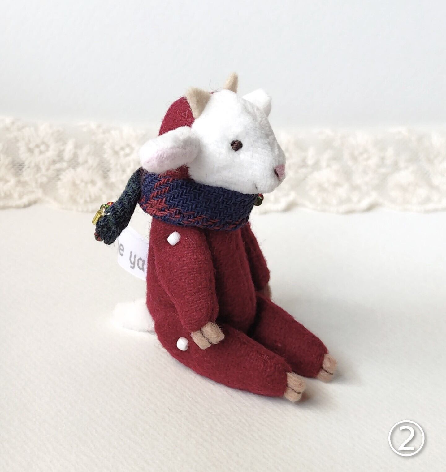 「クリスマスの思い出」からやって来たヤギさんです。お気に入りのマフラーと一緒に。